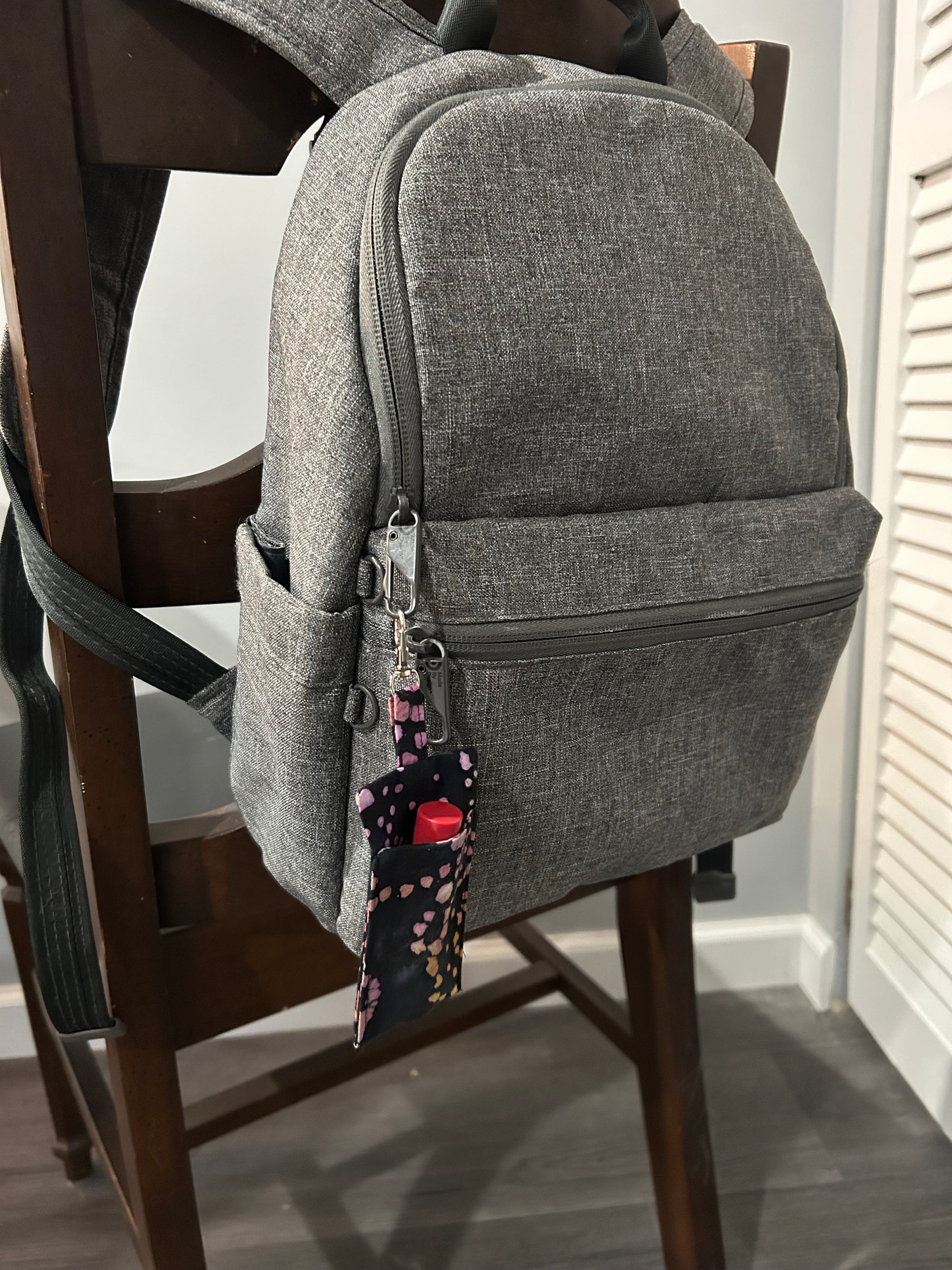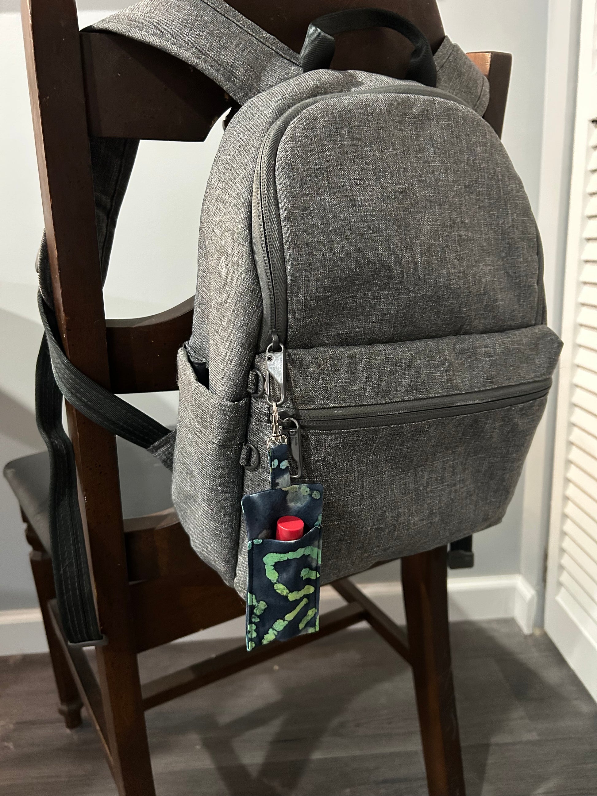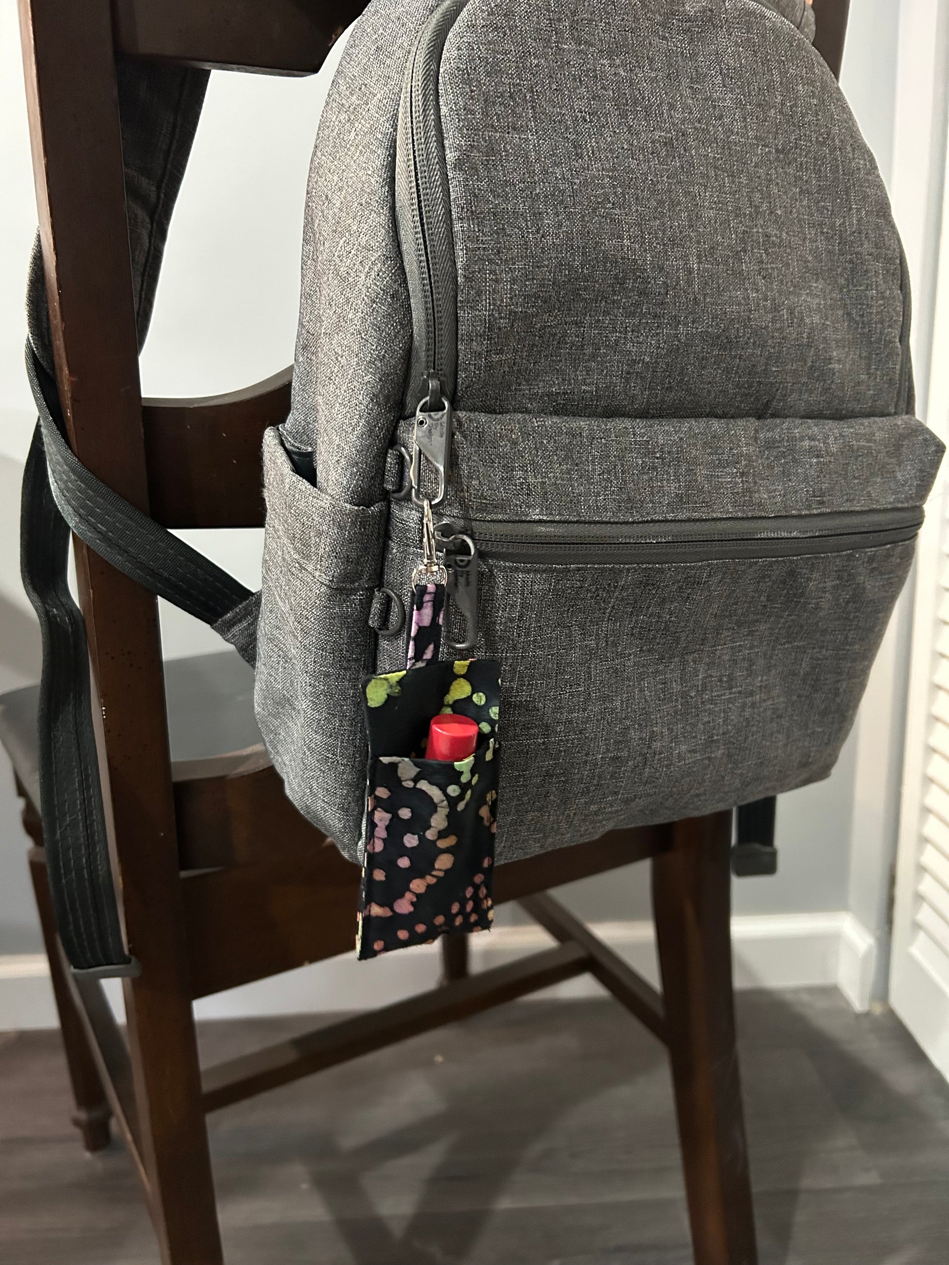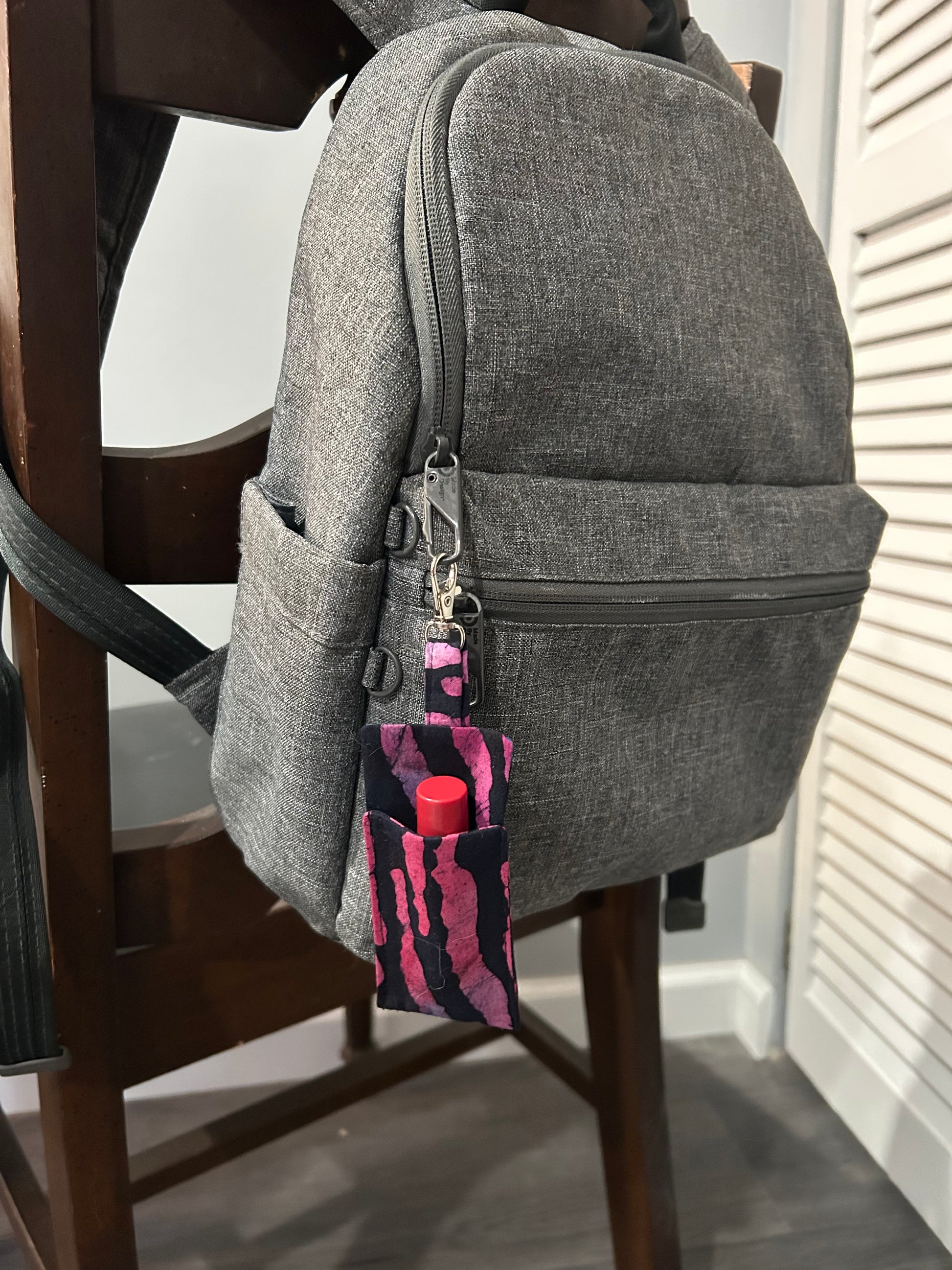 Keep your lip balm always close to hand! This keychain fastens to your keys or a backpack or purse, and holds a single tube of lip balm. Each holder is unique; choose your color above. Measures 6" x 2", machine washable. Lip balm not included.